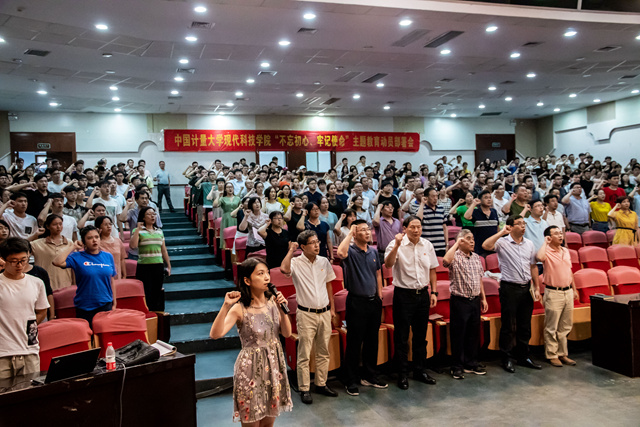 会议最后,全体师生党员重温了入党誓词。在主题教育活动开展之前,现代科技学院党委就已充分利用暑假时间开展专项整治,研究通过《现代科技学院“学习强国”平台学习管理办法》,并于9月中旬启动了对学习强国先进个人和支部的表彰,营造了浓厚的学习氛围。下一步,学院党委将按照主题教育实施方案要求,统筹安排、有序推进,确保主题教育取得实实在在的效果,努力把全体党员的初心使命变成锐意进取、开拓创新的精气神和埋头苦干、真抓实干的自觉行动,推动学院发展再上新台阶。