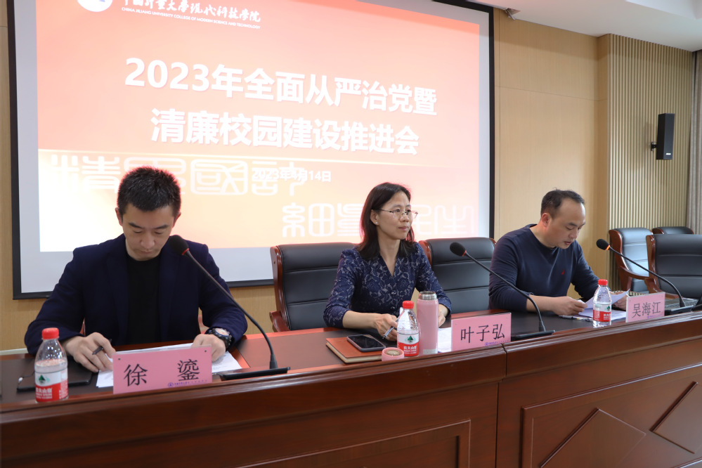 4月14日下午,学院2023年全面从严治党暨清廉校园建设推进会在崇德楼501会议室召开。在家院领导出席会议,全体中层干部参加会议。党委副书记吴海江主持会议。