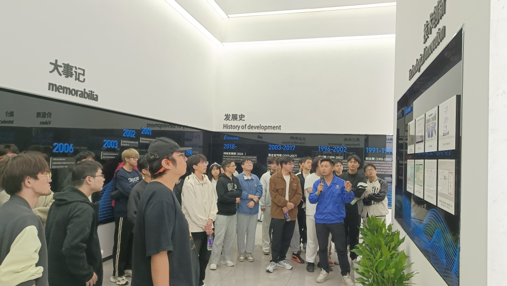 在公司展示大厅,企管部经理叶建军和服务中心主管吴建华,通过生动的讲解和详细的演示,向学生们展示了迪元仪表在仪器仪表领域的先进技术和卓越成就,使学生们收获颇丰,深受启发。
