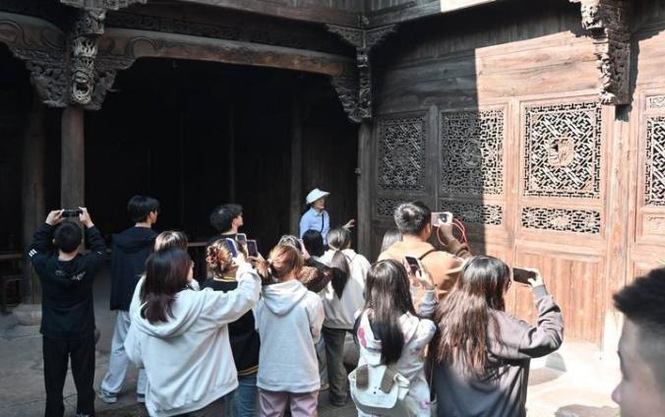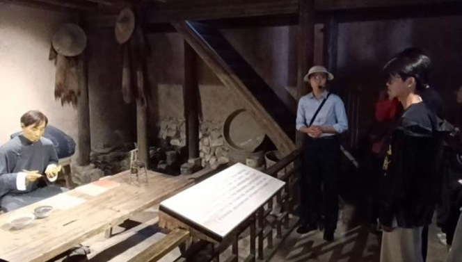 大家踏着青石板,拾级而上,很快映入眼帘的便是一间柴屋与一栋老宅。经讲解员介绍,柴屋是晚近重修过的。之前的柴屋太小太破,已在多场风雨中塌陷。而在它旁边的老宅却是旧貌原存,仅做过最小化的修缮。但即便如此,老宅的东阳风木雕与浙中庭院设计依然让它保持着过往精致典雅的形态。这引得不少前来参观的游人驻足。可谁曾想,作为思想巨著的《共产党宣言》中文首译本却是在这弱不禁风的破小柴屋里诞生。