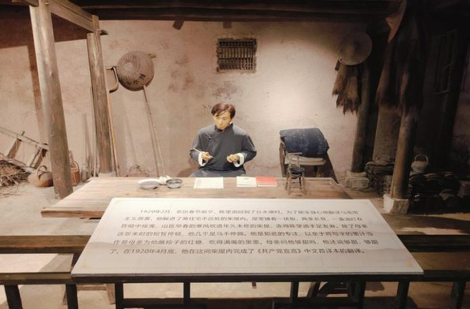 2012年11月29日,习近平总书记在参观《复兴之路》展览时,讲述了陈望道先生翻译《共产党宣言》的故事。故事里的对话,就发生在浙江省义乌市分水塘村的一间柴房里。陈望道先生在这里完成了《共产党宣言》首个中文全译本的翻译工作,这为近代饱受混沌现实之苦的中国人,带去了一份马克思主义信仰的真理之甜。同时,也成为了中国共产党追索革命前程的思想原点。