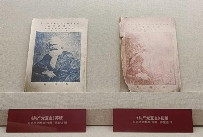 1920年4月,陈望道先生在完成《共产党宣言》的翻译工作后,随即便交付出版。同年8月《共产党宣言》中译本作为“社会主义研究小丛书第一种”,由上海又新印刷所承印,首印成书便有1000册。为尽快让这本小书发挥无穷的思想启迪力量,渴求新知的急迫,在印刷机器的加速运转中给《共产党宣言》首个中译本的面世带去了一个小小历史的缺憾,那便是将“共产党宣言”错印成了“共党产宣言”。不过,这个小小的印刷错误并未阻碍中国人对马克思主义信仰的追寻。同年9月,本书再版纠正了印刷错误,《共产党宣言》的印刷量也获得了大幅增加。到1926年5月,仅平民书社一家的印刷版次就已高达17版。到1938年,各大印刷厂对陈望道先生翻译的《共产党宣言》的印刷版次接近40个版本。就是在如此快速、广泛的传播过程中,马克思主义逐步在中国革命的实践探索历程中生根发芽,为中国革命的推进指引出了一条新民主主义革命的道路。最终,在1949年,新中国得以诞生。