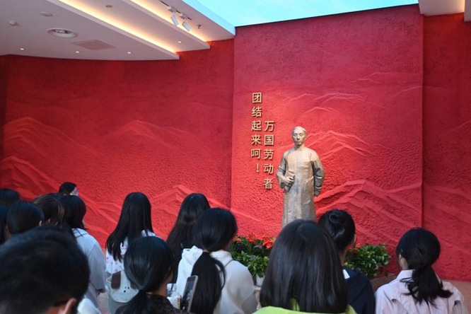 这些耳熟能详的宣言话语,在本次活动的尾声由刘卓老师与金佳琪同学带领参观师生共同诵读。这也是本次主题思政实践课的特设环节。在此,我们通过诵读原文,与信仰相识相知,也在诵读中,深切回味与感触参观历程中我们所听闻的故事、见证的历史与寻觅到的那些历史脉络。