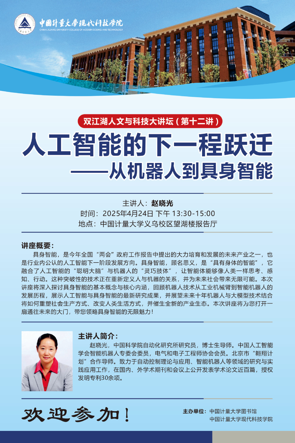 双江湖人文与科技大讲坛(第十二讲):人工智能的下一程跃迁——从机器人到具身智能