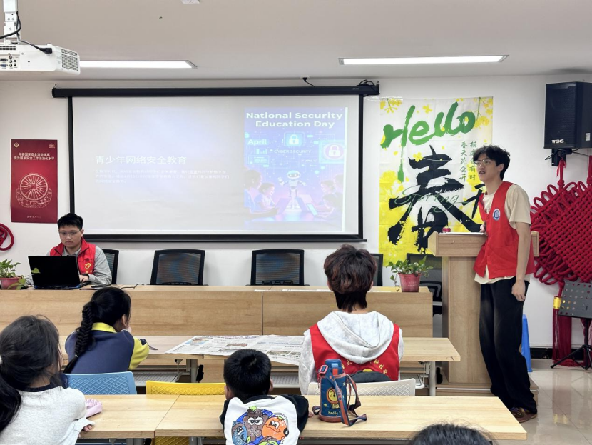 4月12日,在第10个全民国家安全教育日到来之际,信息工程学院智护未来网络安全志愿服务队联合稠江街道兴业社区党委,创新开展国家安全小卫士主题教育活动。通过理论科普+技术解码+实践育人三维联动模式,以青年担当筑牢国家安全意识根基,为辖区青少年打造沉浸式国家安全教育课堂。