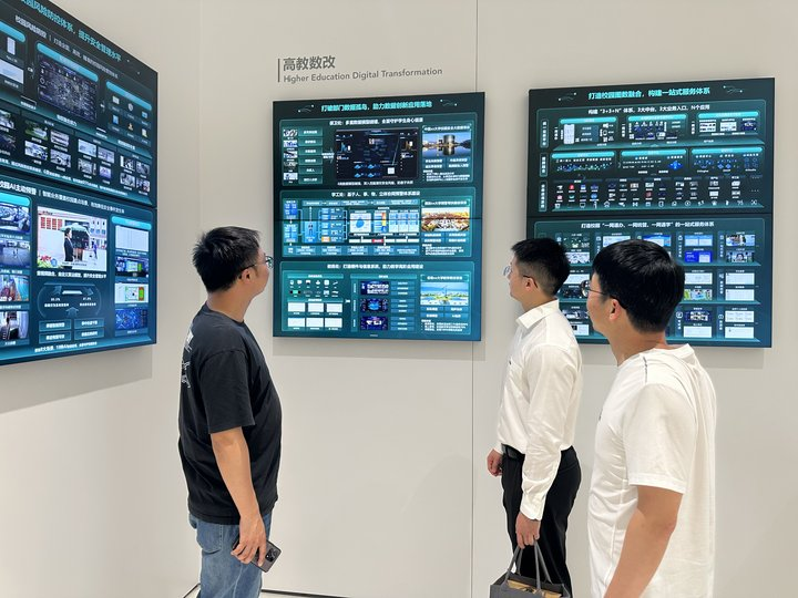 在企业展厅,季燎原一行详细了解大华集团在智慧城市、智能物联领域的解决方案,以及海康威视在AI视觉、大数据分析等核心技术上的突破。2015届校友沈思源现场演示了大华集团的技术在智能安防、工业互联网等应用场景,展现了科技创新对产业升级的驱动作用。在海康威视集团,季燎原与2015届校友蒋森泉深入探讨技术转化路径,并围绕“人工智能+教育”等交叉领域展开交流。