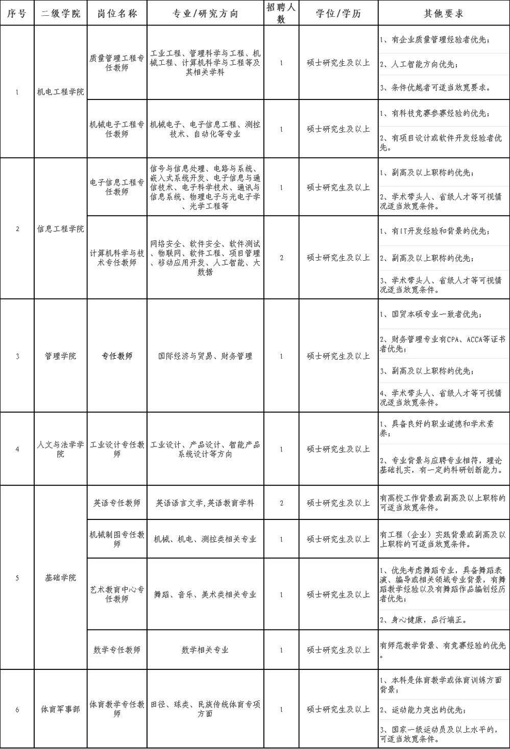 因工作需要,中国计量大学现代科技学院拟面向社会招聘专任教师。现将有关事项公告如下: