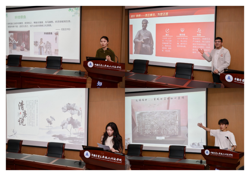 为深入贯彻中央八项规定精神学习教育,弘扬清廉文化,筑牢思想防线,营造风清气正的良好氛围,学院纪委于6月5日成功举办第八届廉政文化节系列活动之“青”廉故事会。马克思主义学院院长胡宇南教授,学院纪委委员、纪检监察室主任金叶英,团委(创新创业学院)书记潘振江,继续教育学院院长钱鸿卿,学院纪委委员、学生处副处长马柏义及部分学生党员参加了活动。