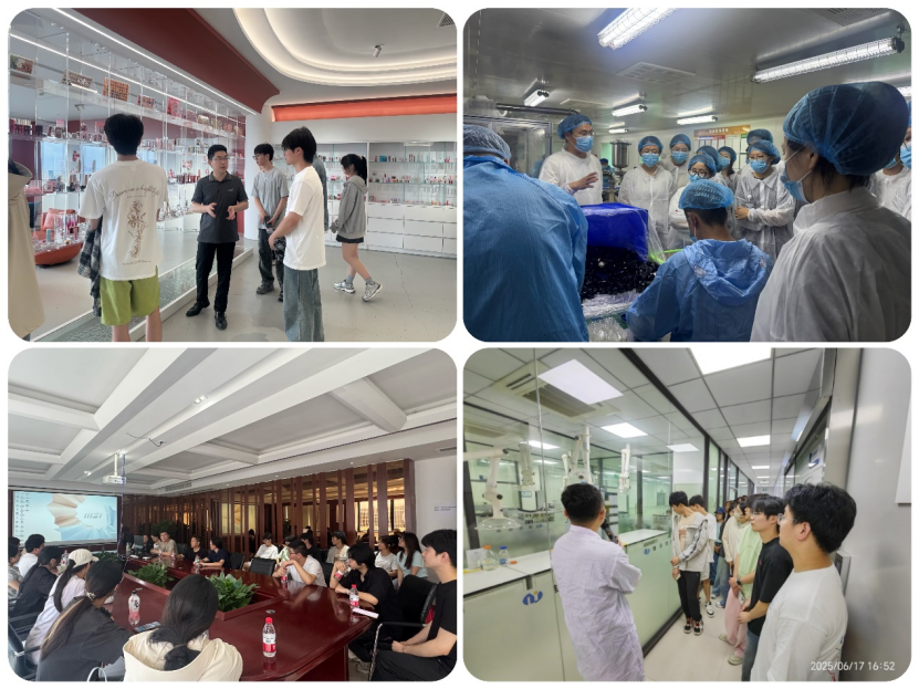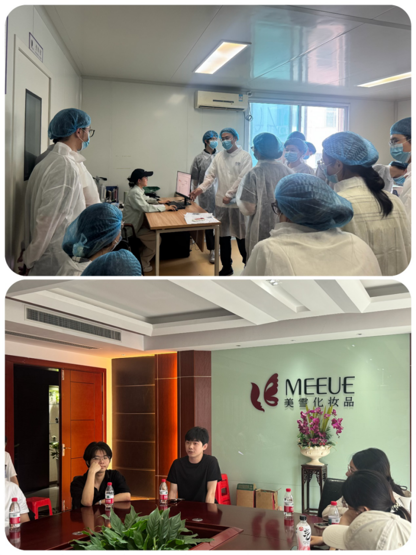 在认知实习过程中,师生们受到了各公司热情的接待。同学们参观了公司的生产区域、研发中心以及产品展示厅等多个部门,深入了解了化妆品生产企业的日常运营流程。企业高管向师生们详细介绍了公司的发展历程、业务范围以及在生产销售、产品研发、跨境运营等多个领域取得的显著成绩,并结合实际案例为学生们讲解了化妆品各项专业技能在实际工作中的应用。学生们在参观过程中认真聆听、积极提问,对公司先进的运营模式和研发能力表现出浓厚的兴趣。