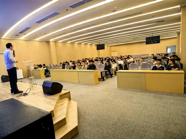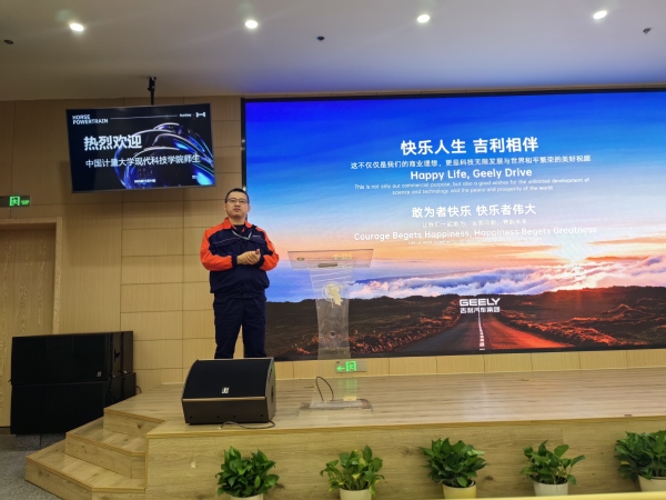 在动力计量检测中心,吉利集团义乌基地胡志豪经理系统介绍了吉利集团的发展历程、产业布局及技术创新成果。动力计量检测中心部长李立国为同学们带来一场生动的职业分享。他结合自身从求学到就业的成长经历,勉励大家珍惜在校时光,夯实专业基础。