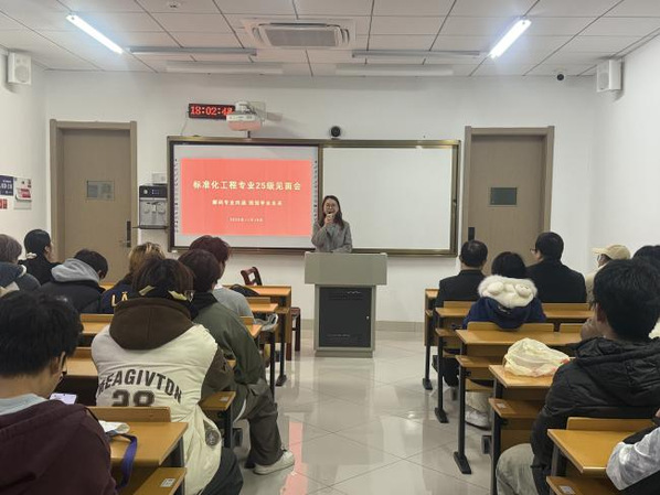 为帮助标准化工程专业新生了解专业内涵、明晰学业与就业方向,11月18日晚,管理学院标准化工程专业召开师生见面会。专业负责人谭娜主持会议,院长钱存阳、教学副院长屠国平、副教授陈育蕾、专任教师陶航征、刘璐瑶、徐晨旸参与会议,与2025级新生面对面沟通交流。