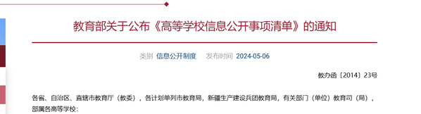 为进一步推进高校信息公开工作,扩大社会监督,提高教育工作透明度,根据《中华人民共和国政府信息公开条例》《高等学校信息公开办法》,我部研究制定了《高等学校信息公开事项清单》(以下简称清单)。现予公布,并就有关事项通知如下。