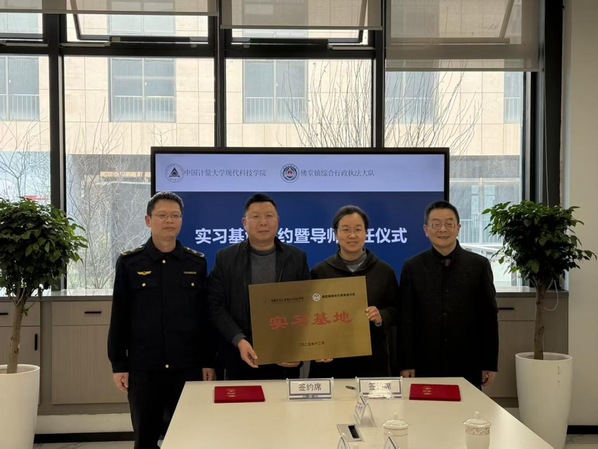 为深入推进产教融合协同育人,将高校的教学和科研与基层社会治理的实践需求对接,12月17日下午,人文与法学学院与义乌市佛堂镇综合行政执法大队实习基地签约暨授牌仪式在佛堂镇综合行政执法大楼举行。学院副院长蒲芳,法学专业主管魏连忠,法学专业骨干教师李炜杰、张睿,辅导员黄可,与佛堂镇副镇长王冠军,执法局党委委员、大队长王剑晖,大队教导员江沈,大队办公室主任罗雪飞共同出席了本次仪式。